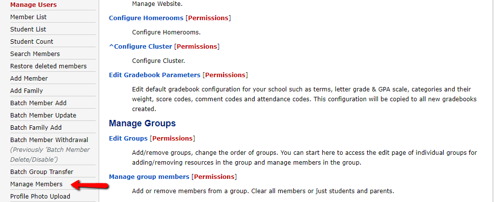 - Select "Manage Members" from the section Manage Users left toolbar.