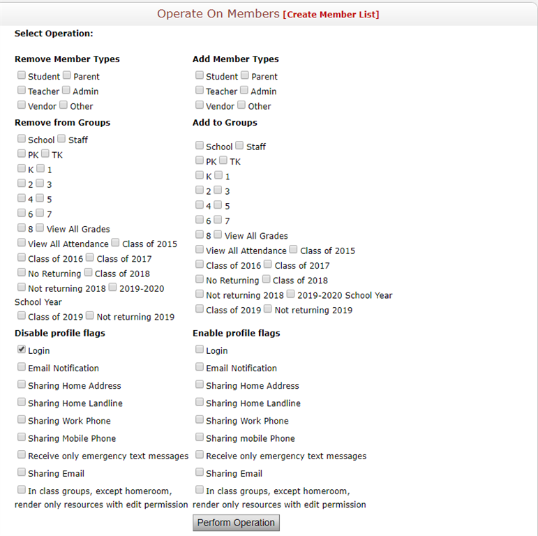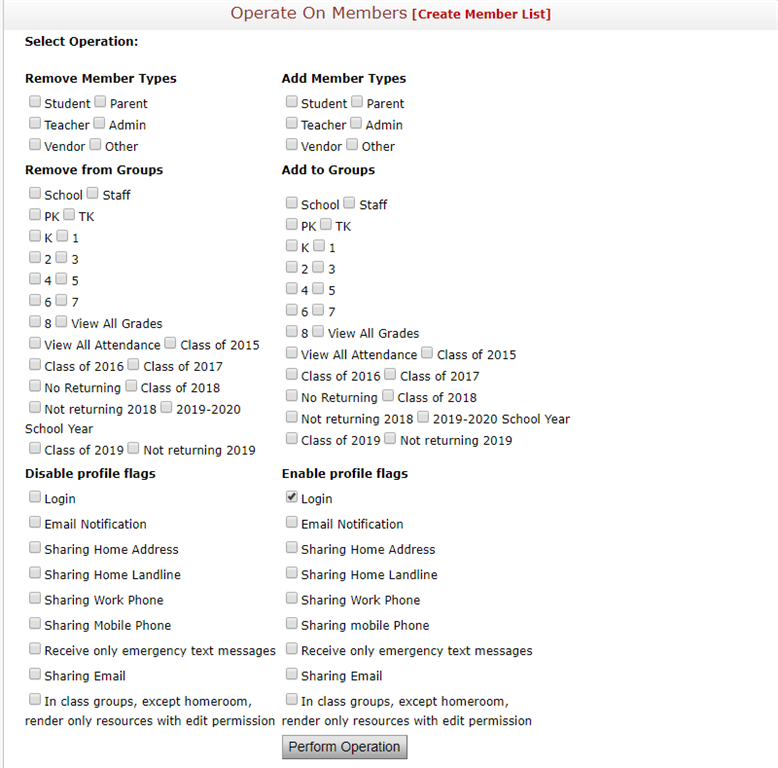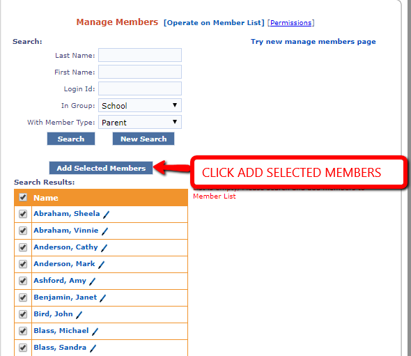 - Use the "With Member Type:" dropdown to filter based on member type (parent/teacher/student)